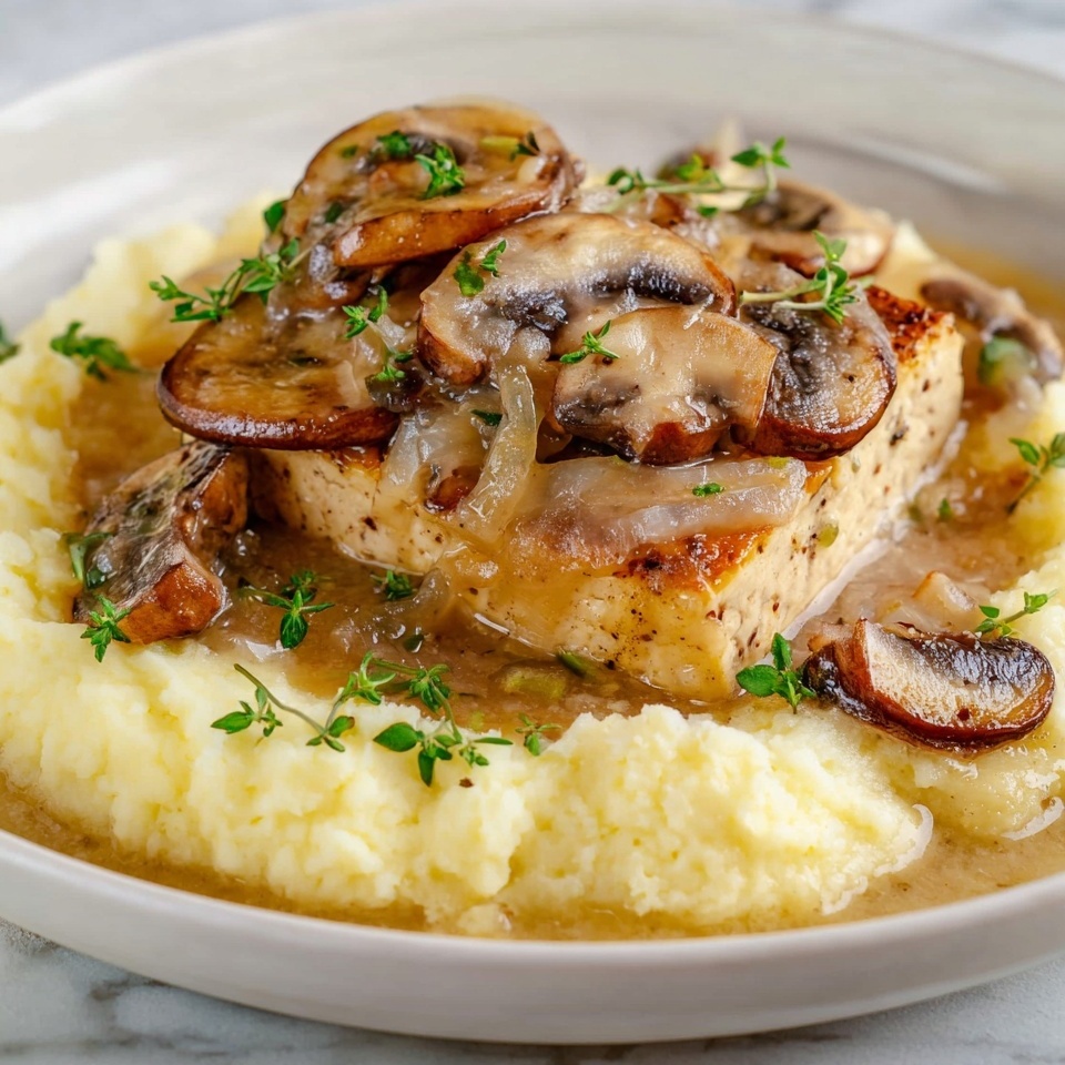 Creamy Sherry Tofu with Mushrooms and Mashed Potatoes Recipe