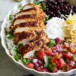 - Assemble the burrito bowls: Divide the cooked rice, black beans, and shredded lettuce evenly among six bowls. Top each with sliced chipotle chicken, avocado slices, and a generous spoonful of salsa. Serve immediately and enjoy.