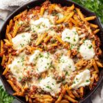 This Baked Penne recipe features tender pasta combined with a savory ground beef and marinara sauce mixture, topped with creamy ricotta, mozzarella, and parmesan cheeses, then baked to bubbly perfection. It's a hearty and comforting Italian-American casserole that's perfect for a family dinner or meal prep.