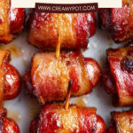Brown Sugar Bacon Little Smokies are a crowd-pleasing appetizer featuring smoky little sausages wrapped in crispy bacon and coated with a sweet brown sugar glaze, baked to perfection for a deliciously sticky and savory bite.