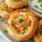 These Buffalo Chicken Pinwheels are a delicious and easy appetizer featuring tender shredded chicken mixed with buffalo sauce, cream cheese, and mozzarella, all wrapped in flaky puff pastry and baked to golden perfection. Perfect for game day or parties, they offer a spicy, creamy flavor with a crispy crust.