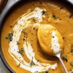 A creamy and comforting Butternut Squash Soup made with roasted vegetables, fresh herbs, and a touch of smoked paprika. This easy-to-make soup is blended to silky perfection and finished with a drizzle of cream for a rich texture.