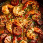 This Slow Cooker Jambalaya recipe features tender cubed chicken breasts, flavorful andouille sausage, and succulent shrimp slow-cooked with bold Cajun spices, fresh vegetables, and long-grain rice. With just 10 minutes of prep and minimal hands-on time, it delivers a hearty, comforting meal packed with southern flavors.