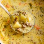 This comforting Cheeseburger Soup combines ground beef, vegetables, and creamy cheese in a hearty and savory broth. Perfect for a cozy meal, it features tender potatoes and a rich cheese sauce made with Velveeta or cheddar cheese, topped off with a touch of sour cream for extra creaminess.