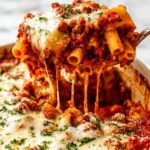 This classic Baked Ziti recipe features tender pasta tossed in a rich, savory Bolognese sauce layered with creamy ricotta and plenty of mozzarella and Parmesan cheese, then baked to bubbly perfection. Perfect as a comforting family dinner or make-ahead meal.