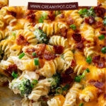 - Combine Ingredients: Stir in shredded chicken, cooked broccoli, and half of the crumbled bacon. Then fold in the cooked pasta, coating everything evenly. If needed, combine in a large pot for space.