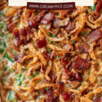 - Add Topping and Finish Baking: Remove the casserole from the oven and evenly sprinkle the remaining bacon and French fried onions on top. Return to the oven and bake an additional 5 minutes until the onions are golden and crispy.