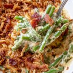 - Add Topping and Finish Baking: Remove the casserole from the oven and evenly sprinkle the remaining bacon and French fried onions on top. Return to the oven and bake an additional 5 minutes until the onions are golden and crispy.