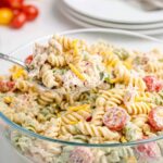 Short, shaped pastas like spiral, rotini, or bowtie work best since they hold onto the ranch dressing and mix-ins well. Avoid very thin pasta like angel hair as it can get mushy and won’t hold the flavors as nicely.