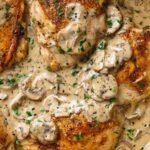 A comforting and elegant Chicken with Creamy Mushroom Sauce recipe featuring tender seared chicken breasts in a rich, creamy mushroom and Parmesan sauce, perfect for a satisfying dinner.