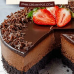A rich and creamy chocolate cheesecake featuring a chocolate cookie crust, smooth chocolate-infused filling, and a glossy chocolate ganache topping. Perfectly baked for a slightly jiggly center and chilled to set for a decadent dessert experience.