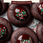 Delicious and rich Chocolate Thumbprint Cookies featuring a soft cocoa cookie base filled with smooth chocolate ganache. Perfectly balanced with a hint of vanilla and enhanced by a creamy, decadent ganache center.