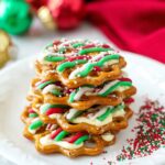 Christmas Caramel Pretzel Bites are a festive and crunchy holiday treat featuring mini pretzels topped with melted caramels, then drizzled with vibrant red, green, and white candy melts and finished with colorful holiday sprinkles. These bite-sized sweets combine sweet, salty, and crunchy textures, perfect for seasonal gifting or party snacks.