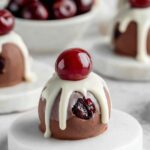 - Add decoration: Once coated, if the chocolate has set on the truffle, place about ½ teaspoon of white chocolate on top and press half a glacé cherry on each truffle.