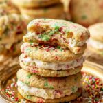 Delight in these festive Christmas Oatmeal Cream Pies featuring soft, chewy oatmeal cookies studded with colorful dye-free sprinkles and sandwiched with a creamy, vanilla-almond buttercream filling. Perfect for holiday celebrations and gift-giving.