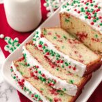 This festive Christmas Bread is a moist and fluffy loaf speckled with colorful Christmas sprinkles and topped with a smooth vanilla glaze, perfect for holiday celebrations and gifting.