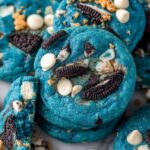 These vibrant Cookie Monster Cookies are bursting with color and packed with white chocolate chips, Chips Ahoy cookies, and Oreos for a fun and indulgent treat. Perfect for parties or as a delightful snack, these cookies feature a fluffy, blue-tinted dough and a crisp-on-the-outside, chewy-on-the-inside texture.