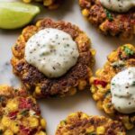 Delicious and crispy corn fritters served with a zesty jalapeño Greek yogurt sauce. These fritters combine fresh corn, bell pepper, and herbs for a flavorful snack or appetizer, perfect for any occasion.