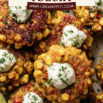 I usually sprinkle flaky sea salt and a handful of chopped cilantro on top right after frying. The flaky salt adds crunch and a burst of savory goodness, while fresh cilantro brings vibrant color and freshness that ties in with the flavors inside the fritters perfectly.