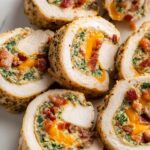 This Chicken Roulade recipe features tender chicken breasts rolled with a savory mix of crispy bacon, steamed broccoli, cheddar, and Parmesan cheese. Seared to a golden crust then baked to perfection, it's a flavorful and elegant main course perfect for a comforting dinner served alongside mashed potatoes and green beans.