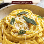 - Serve: Divide the creamy butternut squash Alfredo pasta among plates. Top with extra Parmesan cheese and garnish with fried sage leaves if desired. Serve immediately for best flavor and texture.
