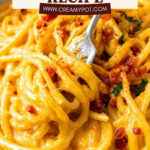 This creamy Butternut Squash Pasta features roasted butternut squash, caramelized onions, and roasted garlic blended into a luscious sauce, tossed with al dente pasta and crispy pancetta, finished with parmesan cheese and fresh parsley for a comforting and flavorful dish perfect for fall or any cozy dinner.