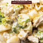 Medium pasta shells, penne, or rotini are favorites because they hold the Alfredo sauce well, but you can use any pasta you like — just adjust cooking times accordingly.