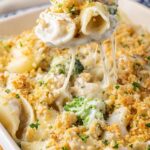 This Chicken Alfredo Bake is a comforting and creamy casserole featuring tender chicken breast, al dente pasta shells, fresh broccoli, and a rich homemade Alfredo sauce topped with melted mozzarella cheese and optional crunchy Ritz cracker topping. Perfect for an easy and satisfying dinner that can feed a family of eight.
