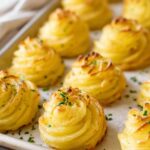 This Best Duchess Potatoes recipe features creamy, garlicky mashed Yukon gold potatoes piped into elegant swirled mounds, baked to a golden finish with Parmesan and butter. Perfect as an elegant side dish, it is rich in flavor and texture, making it a classic comfort food ideal for special occasions or everyday dinners.