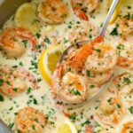 A rich and creamy garlic shrimp recipe featuring succulent large shrimp cooked in a flavorful sauce of white wine, garlic, chicken broth, heavy cream, and Parmesan cheese, finished with fresh lemon juice and parsley. Perfect served over pasta, rice, or with crusty bread for a satisfying meal.
