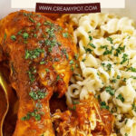 Chicken Paprikash is a classic Hungarian dish featuring tender chicken thighs and drumsticks simmered in a rich, creamy paprika sauce made with sweet Hungarian paprika, onions, garlic, and sour cream. This comforting one-pot meal is perfect for cozy dinners and is served garnished with fresh parsley.