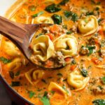 A rich and comforting Creamy Sausage Tortellini Soup featuring browned Italian sausage, tender veggies, and cheese tortellini simmered in a flavorful broth enriched with cream and Parmigiano rind.