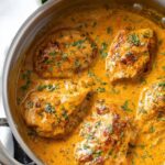 Marry Me Chicken is a creamy, flavorful skillet chicken dish coated in a rich sauce made with chicken broth, white wine, sundried tomatoes, and Parmesan cheese. It combines tender, seasoned chicken breasts seared to golden perfection with a luscious sauce featuring garlic, tomato paste, cream cheese, and a touch of honey and hot sauce for depth. This comforting yet elegant recipe is perfect for a satisfying weeknight dinner or a special occasion meal.