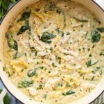 - To save time, use pre-cooked rotisserie chicken and add it at the end with the pasta and spinach.