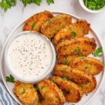 Crispy and flavorful Air Fryer Fried Dill Pickles offer a delicious twist on a classic snack. Coated with a crunchy panko breadcrumb crust seasoned with paprika, salt, and pepper, these pickles make a perfect appetizer or snack that's quick and easy to prepare using an air fryer.