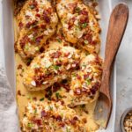 Million Dollar Chicken features juicy baked chicken breasts topped with a creamy, cheesy mixture loaded with crispy bacon, sharp cheddar, and flavorful seasonings. The topping is finished with crunchy slivered almonds and fresh green onions, creating a perfect balance of textures and flavors. This easy, impressive dish pairs wonderfully with rice, pasta, or your favorite vegetables for a satisfying dinner.