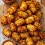 Air Fryer Cheesy Tater Tots are crispy, golden shredded potatoes mixed with sharp cheddar cheese and seasoned perfectly, formed into bite-sized tots and cooked to perfection in an air fryer. This homemade snack offers a cheesy, crunchy delight that's a great appetizer or side dish.