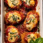 - Assemble and Bake: Arrange the browned chicken cutlets in a large baking dish. Layer each cutlet with a slice of mozzarella cheese and spoon marinara sauce over the top.