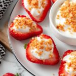 Deviled Strawberries are a delightful twist on classic deviled eggs, featuring fresh strawberries halved and filled with a creamy, sweetened cream cheese mixture, then topped with a crunchy golden Oreo and strawberry gelatin topping. This no-bake, elegant appetizer or dessert is perfect for parties and gatherings, combining creamy, fruity, and crunchy textures in every bite.