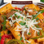 Sturdy pasta shapes like rigatoni, penne, or ziti hold up best because they don’t turn mushy when tossed with the sauce and sausage. Avoid delicate or thin pastas that cook quickly and can get soggy.