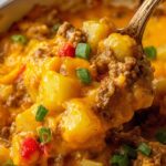 This Crockpot Beefy Potato Taco Casserole is a hearty, flavorful one-pot meal that combines seasoned ground beef, diced potatoes, and melted cheddar cheese with a zesty taco twist. Slow-cooked to perfection, it offers a comforting blend of savory ingredients with a creamy texture that's perfect for an easy weeknight dinner.