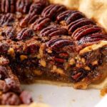 - Assemble Pie: Evenly spread the roughly chopped pecans inside the cooled pie shell. Sprinkle chopped bittersweet and semi-sweet chocolate over the pecans. Pour the filling mixture on top, ensuring even distribution. Arrange whole pecan halves in a decorative pattern on the surface of the pie. Brush the pecans with melted butter to prevent burning during baking.