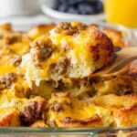 A savory and hearty Christmas Breakfast Casserole featuring browned sausage, eggs, cheese, and bread soaked overnight for a perfect holiday morning dish.