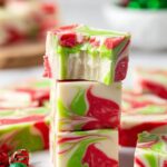 This festive Christmas fudge recipe features creamy white chocolate swirled with vibrant red and green gel food coloring for a beautiful holiday treat. Creamy, rich, and easy to make, it’s perfect for gifting or sharing at seasonal gatherings.