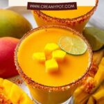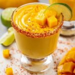 - Serve: Divide the frozen mango margarita evenly between the two rimmed glasses. Garnish with sliced lime wedges or fresh mango pieces if desired. Enjoy your festive frozen mango margarita!