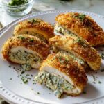 This Garlic Herb Stuffed Chicken recipe features tender chicken breasts stuffed with a flavorful mixture of cream cheese, herbs, garlic, and parmesan, then coated in a seasoned breadcrumb crust and baked to perfection. It's a savory and satisfying dish perfect for an elegant dinner or weeknight meal.