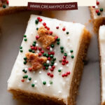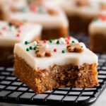 - Frost the bars: Spread the frosting evenly over the cooled bars. Optionally, sprinkle festive sprinkles on top. Refrigerate for 30 minutes to help set the frosting.