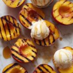Grilled Peaches with Vanilla Ice Cream is a simple and elegant dessert that combines the sweet caramelized flavors of grilled ripe peaches and nectarines with creamy vanilla ice cream, finished with a drizzle of honey and a sprinkle of sea salt for a perfect balance of sweet and savory.