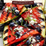 Grilled Watermelon is a smoky, sweet, and juicy summer side dish featuring watermelon wedges lightly charred on the grill and garnished with fresh lime, mint, flaky sea salt, and optional feta cheese and honey. Perfect for cookouts and warm weather gatherings.