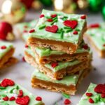 Grinch Christmas Crack is a festive and addictive holiday treat featuring crunchy saltine crackers topped with a buttery toffee layer, coated in vibrant green candy melts and sprinkled with red and green decorations. This easy-to-make sweet snack is perfect for holiday parties and gift-giving.